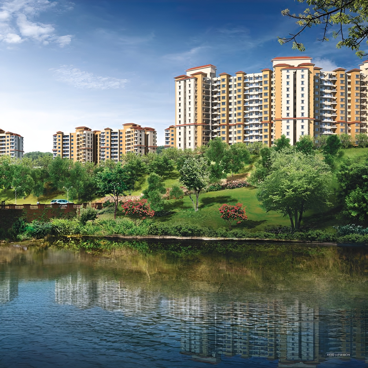 At Everglades, everything feels inviting from the moment you arrive. These magnificent 13-storey buildings feature smartly designed 1 BHK apartments that offer stunning views of the valley and lake. Each home is thoughtfully planned to ensure ample natural light and ventilation throughout, including the kitchen, creating a comfortable and airy living space. A beautifully tree-lined driveway sets the tone with a perfect backdrop, enhancing the elegant facade of the development. Every apartment also comes with a cosy balcony, allowing residents to enjoy breathtaking sunrises and sunsets that uplift the spirit and add a touch of serenity to everyday living.